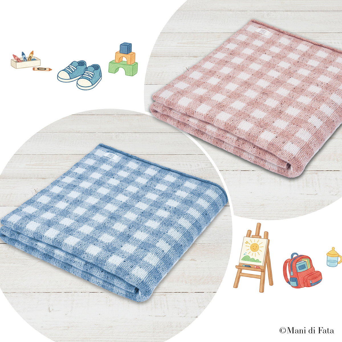 Copertina culla in misto lana motivo a quadri - CELESTE