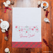 Un progetto simpatico e festoso per portare lo spirito del Natale anche in cucina. L’asciugapiatti è già confezionato in tela di cotone bianco, arricchito da un elegante bordo riportato in tessuto scozzese, perfetto per dare un tocco tradizionale.