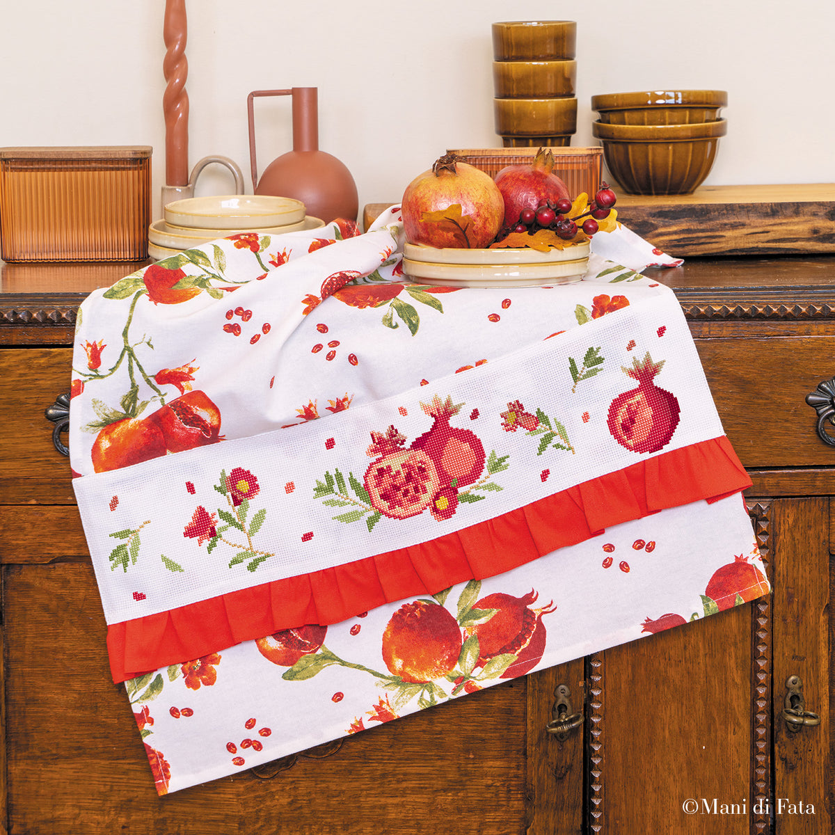 Informare quando questo articolo sarà disponibile Kit asciugapiatti tessuto fantasia melograno e applicazione in Aida