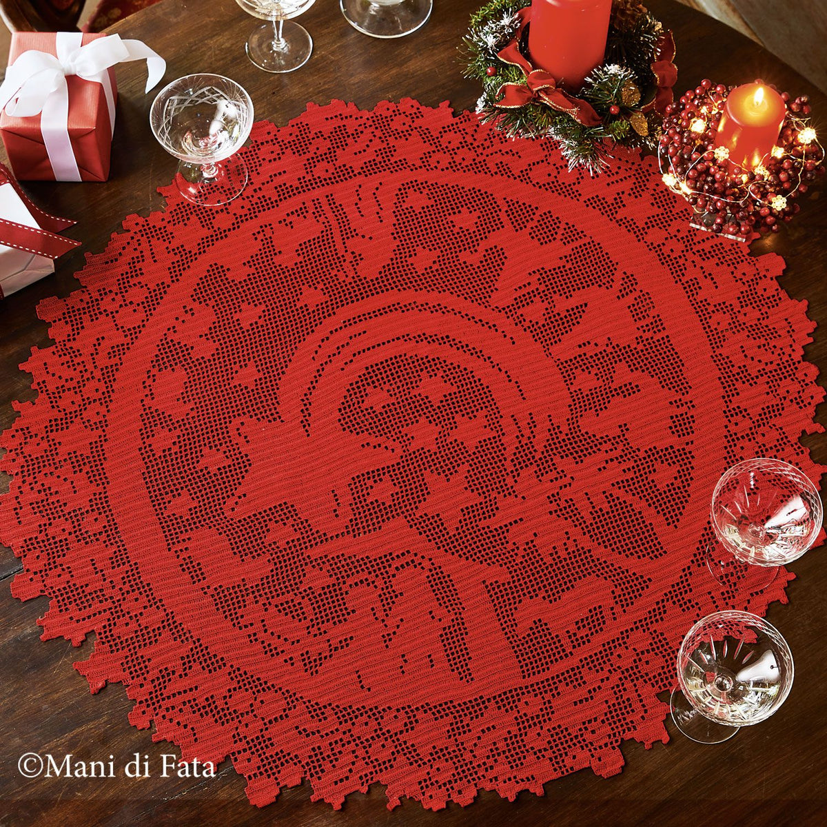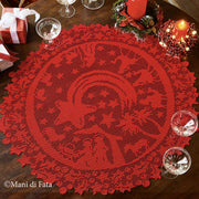 Kit completo composto da schema su carta a quadretti e occorrente per realizzare un elegante centro natalizio a uncinetto filet di colore rosso. Il disegno raffigura i Re Magi in cammino verso la capanna di Betlemme, ideale per decorare la casa con un tocco festivo, artigianale e fatto a mano. Misura finita: 76x73 cm.