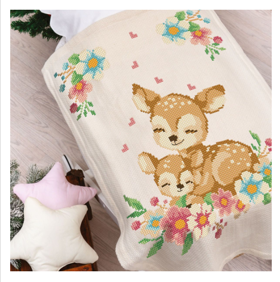 Da ricamare a punto croce con motivo cerbiatti, delicato e fiabesco