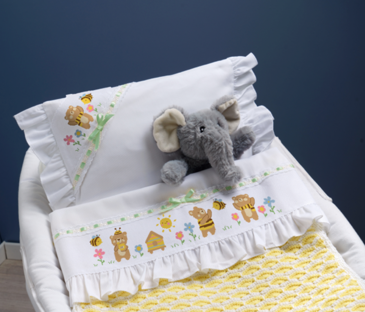 • Completo culla ricamo punto croce e passanastro verde × 1