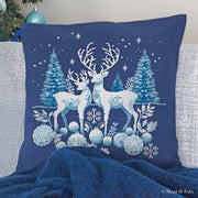 Un progetto raffinato e accogliente per decorare la casa durante le feste. Il cuscino quadrato, già confezionato in Aida di cotone blu, misura cm 41x41 ed è pronto per essere personalizzato con un ricamo a punto croce.