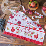 Kit grembiule con tessuto fantasia melograno e applicazione in Aida