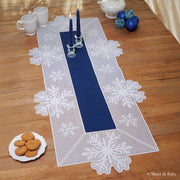 Kit completo composto da taglio tela, filato e schema per realizzare un elegante runner bordato interamente a uncinetto filet, decorato con un raffinato motivo di stelle di neve. Un progetto perfetto per arricchire la tavola invernale e natalizia con un dettaglio artigianale dal fascino classico. Misura finita del runner:58×128 cm