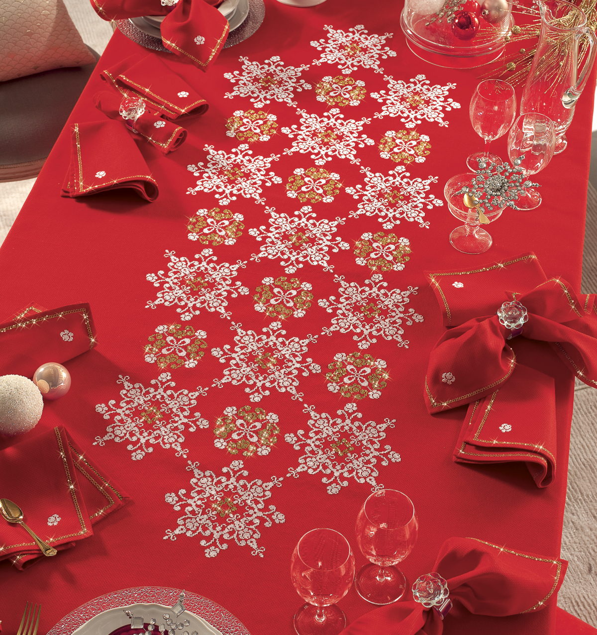 Kit tovaglia rossa da 12 in tela aida da ricamare a punto croce in bianco e oro