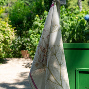 Elegante asciugapiatti in puro lino stampato, pensato per aggiungere colore e stile alla cucina.