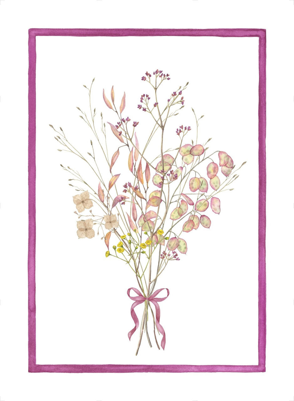Il design presenta un motivo di erbe selvatiche nei toni caldi di giallo, arancione e magenta, racchiuso all’interno di una cornice colorata che ne valorizza la decorazione e crea un effetto armonioso e raffinato.