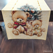 Runner da tavola natalizio in puro cotone che unisce praticità e stile, perfetto per arricchire la tua tavola durante le feste. La base beige chiaro dona luminosità, mentre le estremità sono impreziosite da stampa con orsetti e alberi di Natale decorati, creando un dettaglio gioioso e raffinato senza sovraccaricare la parte centrale.