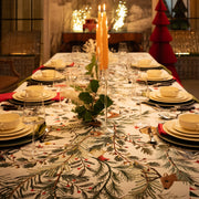 Tovaglia natalizia rettangolare da 12 posti in cotone 'Abeti e addobbi'