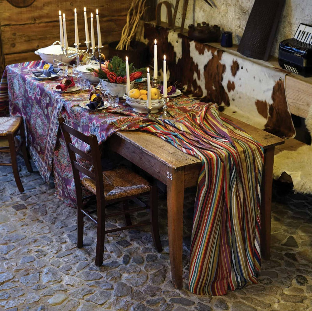 Tovaglia in lino che trasforma ogni tavola in un piccolo capolavoro di eleganza e creatività, perfetta per accogliere pranzi e cene con stile e naturalezza. La fantasia unica unisce armoniosamente il rigore del tessuto finito alla libertà dei fili ancora da intrecciare, per un effetto originale e raffinato.
