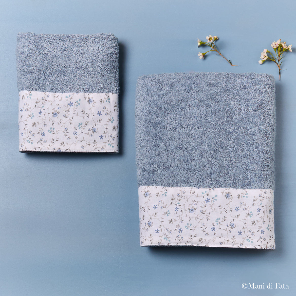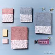 Coppia asciugamani in spugna di cotone 450 gr/mq, elegante e confortevole, arricchita da raffinate balze con motivo floreale. Perfetta per il bagno di casa, combina stile, morbidezza e un tocco di classe per l’uso quotidiano.
