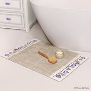 Kit tappeto in spugna tortora con pizzo e motivo lavanda, un complemento raffinato che unisce comfort e romanticismo per impreziosire il bagno con eleganza naturale. La tonalità calda del tortora si armonizza con la delicatezza del pizzo e il fascino provenzale della lavanda, creando un’atmosfera accogliente e curata nei dettagli.