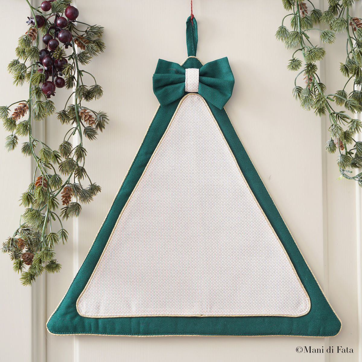 Informare quando questo articolo sarà disponibile Alberello fuoriporta verde con inserto in tela aida filo oro e fiocchetto