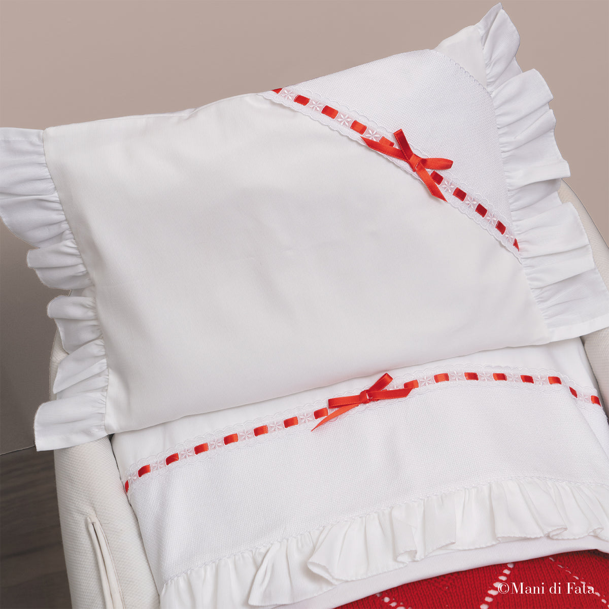 Completo lenzuolino per culla elegante e delicato, pensato per offrire comfort e dolcezza al sonno del tuo bambino. Realizzato in puro cotone di alta qualità, unisce tradizione e raffinatezza grazie ai dettagli ricercati e alla possibilità di personalizzazione.