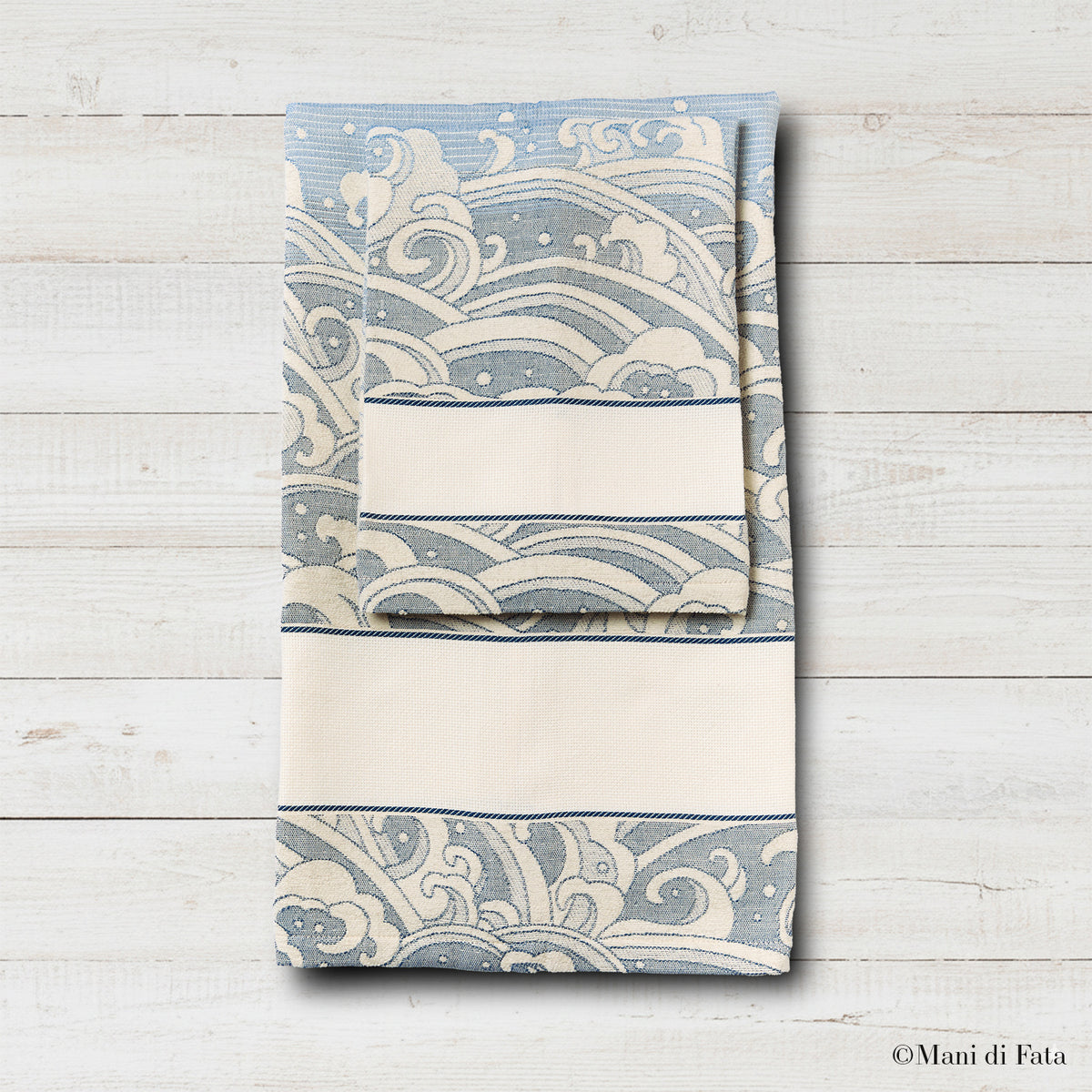 Set composto da asciugamano viso e asciugamano ospite con banda in Aida naturale 58 fori