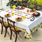 - Tovaglia per 8 persone in tela Aida con bordo stampato fichi e foglie