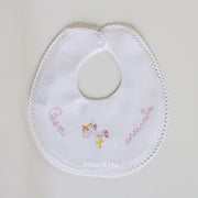 Bavaglino in cotone ricamato a mano cicogna rosa