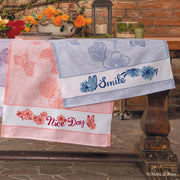 Kit asciugapiatti jacquard da ricamare a punto croce con "Nice Day" rosa