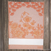 Strofinaccio in puro cotone ritorto pettinato, con vivace stampa floreale color arancio a tema orchidee e ninfee. Arricchito da inserto in tela Aida bianca (55 fori in 10 cm) da ricamare a punto croce, è ideale per un tocco di creatività e personalizzazione. Completo di piccanello per appenderlo. Prodotto artigianale 100% Made in Italy.