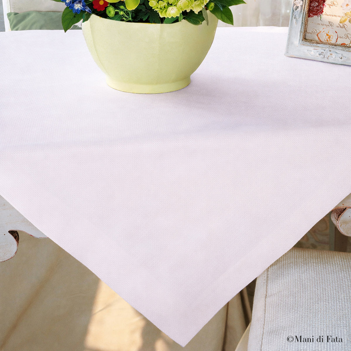 Tovaglietta in puro cotone confezionata in tela Aida bianca, ideale per essere personalizzata con ricamo a punto croce. Rifinita con angolo a cappuccio per un tocco elegante e curato, è un capo perfetto per valorizzare la tua tavola con stile e creatività.